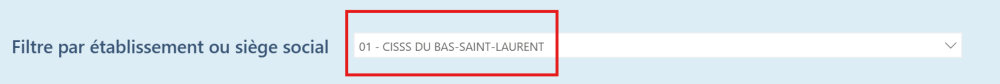 Pour avoir accès aux données du CISSS du Bas-Saint-Laurent, choisissez la région 01 - CISSS du Bas-Saint-Laurent dans le filtre de recherche:
